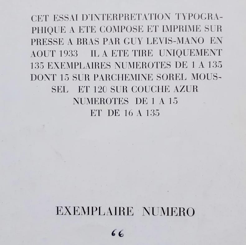 De 1923 à 1974 Guy Lévis Mano (1904-1980), ouvrier typographe et poète a imprimé et édité plus de 500 livres de poésie d'auteurs français et étrangers allant du surréalisme à Garcia Lorca, ou de Louise Labé à Andrée Chedid. "Le style typographique de G.L.M., qui fera rechercher ses livres dans l'avenir comme les plus représentatifs de notre époque, est parvenu à ce même équilibre heureux entre les audaces modernes et la plus sûre tradition."(Albert Béguin, 1949).
