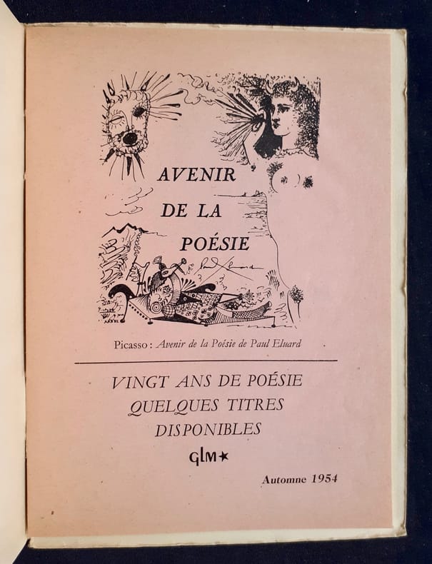 Paris: Guy Lévis Mano, 1954. Un volume broché (14,5x19,5 cm), 70 pages. Catalogue de l'éditeur in-fine sur papier rose (20 pages). Avec 4 reproductions de dessins de Fernandez. Edition originale sur papier courant. Discrètes marques au feutre sur le sommaire sinon bon état. Le poème de Boris Pasternak est traduit par André Du Bouchet.