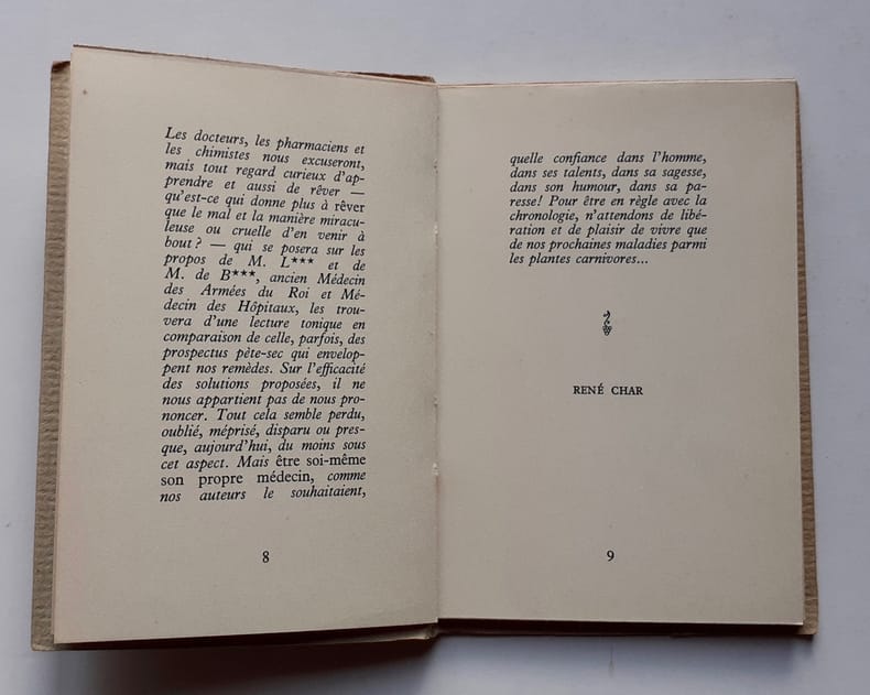 Introduction de René Char. Paris : Guy Lévis Mano (GLM), avril 1954 - un volume broché (13,1x8,8 cm), 48 pages. Edition originale tirée à 1220 exemplaires numérotés : 1/1200 sur alfa. Couverture bleu-gris passée sinon bon état.