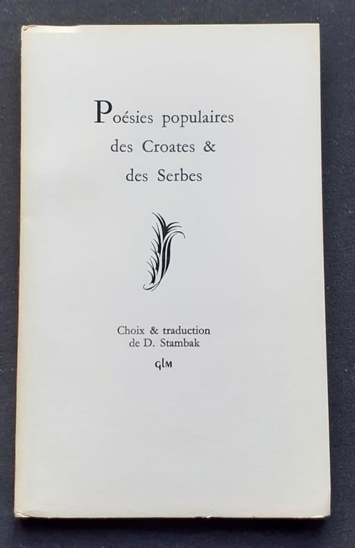 Choix et traduction de D. Stambak. Paris : Guy Lévis Mano (GLM), novembre 1958 - un volume broché (16,5x10,5 cm), 48 pages. Edition originale tirée à 1075 exemplaires numérotés : 1/1000 sur offset. Bon état. Cette anthologie se clôt par des témoignages de Charles Nodier, Stendhal et Germain Nouveau sur la côte illyrienne.