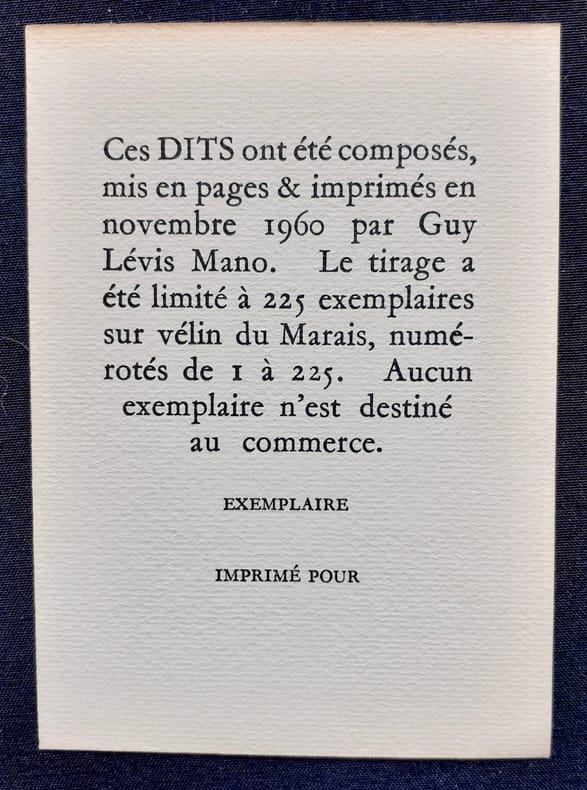 De 1923 à 1974 Guy Lévis Mano (1904-1980), ouvrier typographe et poète a imprimé et édité plus de 500 livres de poésie d'auteurs français et étrangers allant du surréalisme à Garcia Lorca, ou de Louise Labé à Andrée Chedid. "Le style typographique de G.L.M., qui fera rechercher ses livres dans l'avenir comme les plus représentatifs de notre époque, est parvenu à ce même équilibre heureux entre les audaces modernes et la plus sûre tradition."(Albert Béguin, 1949).