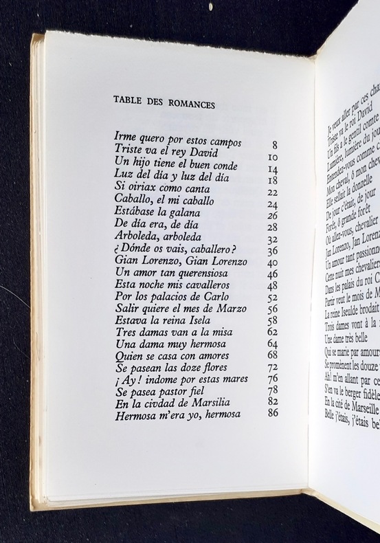Traduction de Guy Lévis Mano. Paris: Guy Lévis Mano (GLM), juin 1971. Un volume broché (14,5x9,4 cm) , 96 pages. Edition originale tirée à 1160 exemplaires numérotés : 1/1140 sur offset. Edition bilingue (français-espagnol). Bon état.