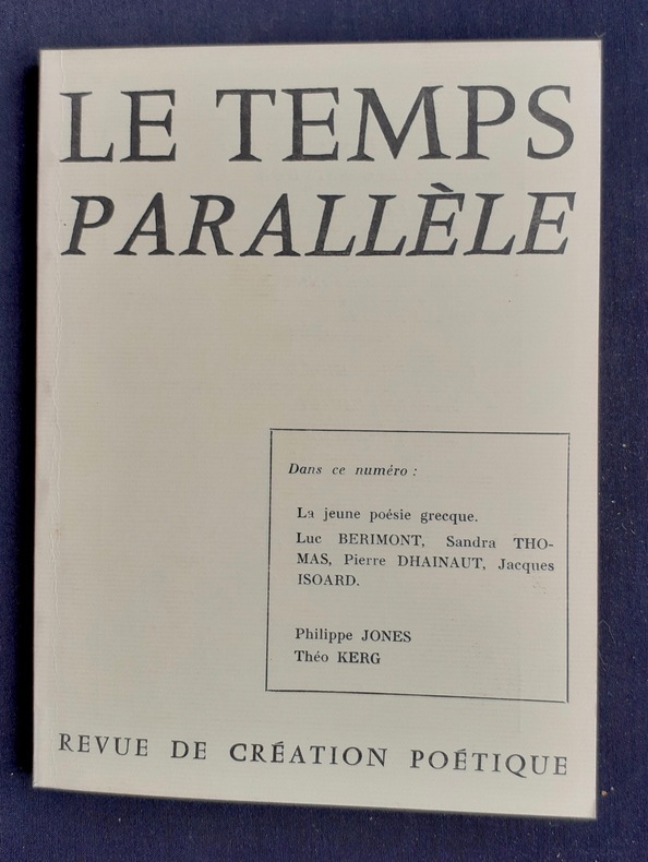 Eygalières, directeur: Pierre Portejoie. Un volume 18,3x13,8cm broché de 78 pages. Bon état.Animé par Pierre Portejoie, Le Temps parallèle compte 35 livraisons parus de 1974 à 1983, suivies en 1984, par la revue de poésie Les Nouvelles parallèles (13 numéros jusqu’en 1991).