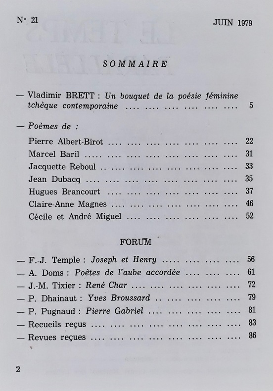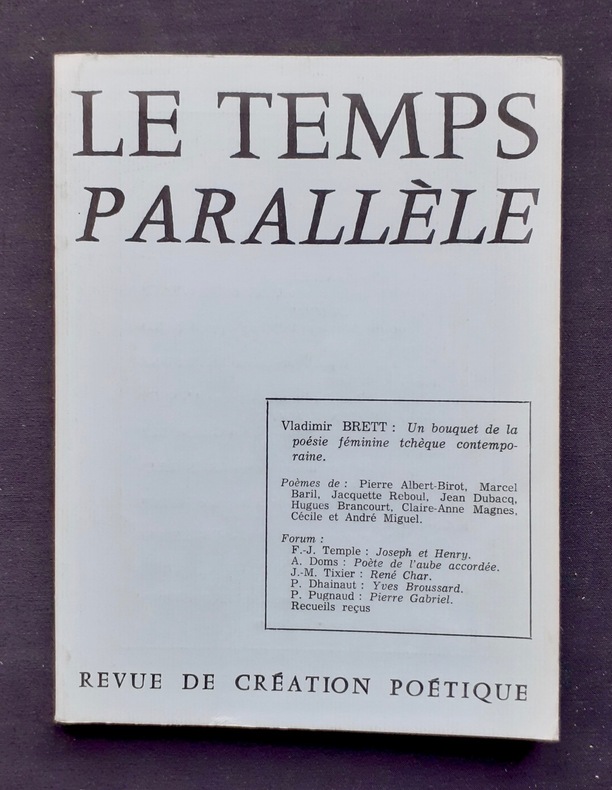 Eygalières, directeur: Pierre Portejoie. Un volume 18,3x13,8cm broché de 90 pages. Comprend un dossier sur la poésie féminine tchèque. Bon état. Animé par Pierre Portejoie, Le Temps parallèle compte 35 livraisons parues de 1974 à 1983, suivies en 1984, par la revue de poésie Les Nouvelles parallèles (13 numéros jusqu’en 1991).