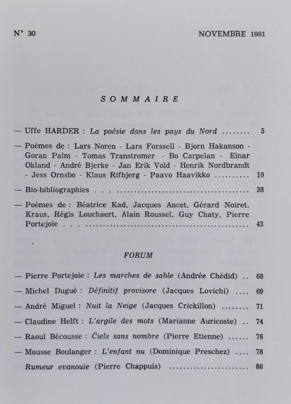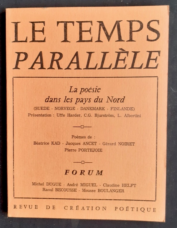 Eygalières, directeur: Pierre Portejoie. Un volume 18,3x13,8cm broché de 80 pages. Comprend un dossier consacré à la poésie dans les pays du Nord. Bon état.Animé par Pierre Portejoie, Le Temps parallèle compte 35 livraisons parues de 1974 à 1983, suivies en 1984, par la revue de poésie Les Nouvelles parallèles (13 numéros jusqu’en 1991).