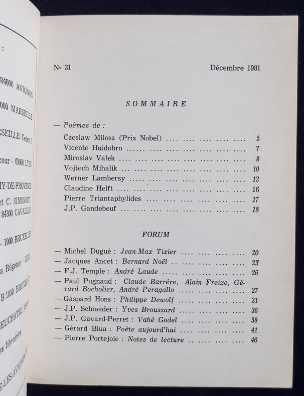 Eygalières, directeur: Pierre Portejoie. Un volume 18,3x13,8cm broché de 50 pages. Bon état. Animé par Pierre Portejoie, Le Temps parallèle compte 35 livraisons parues de 1974 à 1983, suivies en 1984, par la revue de poésie Les Nouvelles parallèles (13 numéros jusqu’en 1991).