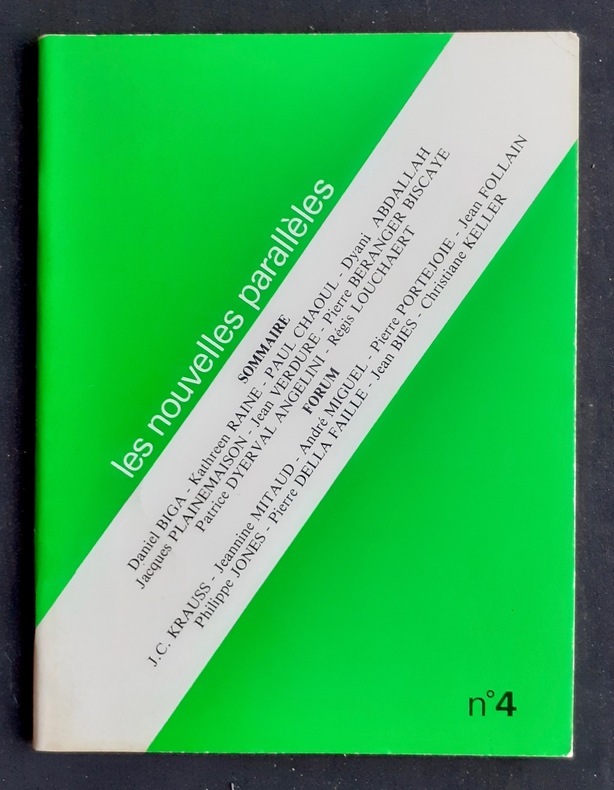 Eygalières, directeur: Pierre Portejoie. Un volume 18x13,5cm agrafé de 50 pages. Bon état.Animé par Pierre Portejoie, Les Nouvelles parallèles (13 numéros jusqu’en 1991) fait suite à Le Temps parallèle (35 livraisons parues de 1974 à 1983).
