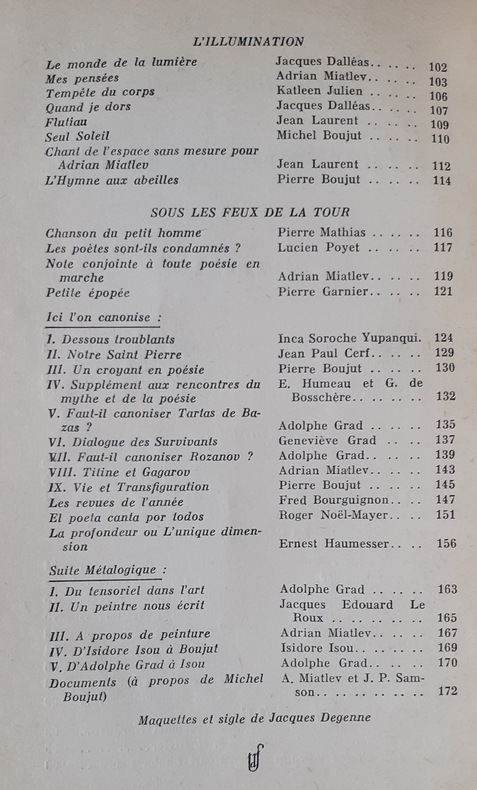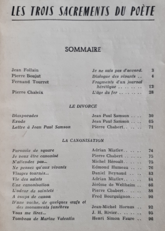 LA TOUR DE FEU. " Revue internationaliste de création poétique ". // N° 73. Avril 1962. " Les trois sacrements du poète ". Jean Follain, Pierre Boujut, Isidore Isou, Fernand Tourret, Jean-Paul Samson, Pierre Chabert, Henri Simon Faure Bon état.