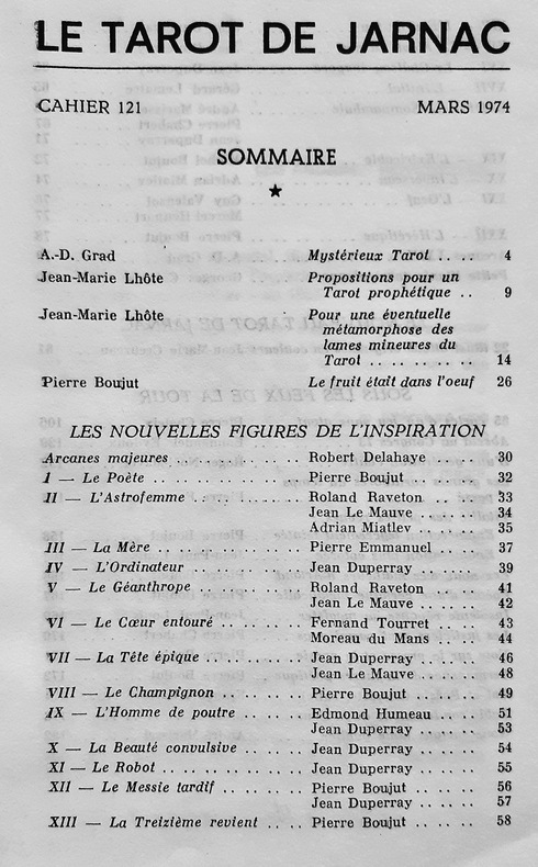 Jarnac, directeur : Pierre Boujut - un volume 22,6x14,3cm broché de 110 pages, non coupées - bon état - 22 planches en couleurs hors texte par Jean-Marie Creuzeau : Le Nouveau tarot de Jarnac.