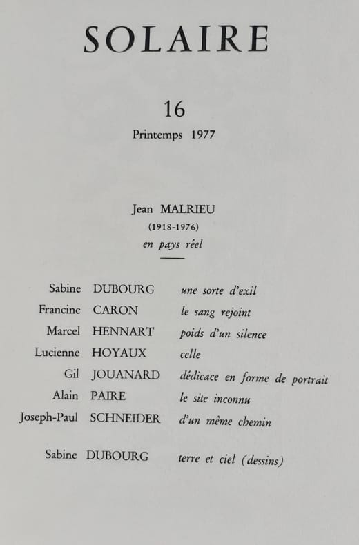Revue de poésie active de mai 1973 à octobre 1983 en 31 numéros et 22 livraisons, animée par René Daillie, alors attaché culturel à l’Ambassade de France au Caire. «Solaire s’adresse à ceux pour qui la poésie ne saurait être une industrie comme une autre, ni un aspect de la linguistique expérimentale, mais d’abord un rapport de tous les instants avec la vie et l’univers, une raison.»