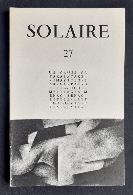 Revue de poésie active de mai 1973 à octobre 1983 en 31 numéros et 22 livraisons, animée par René Daillie, alors attaché culturel à l’Ambassade de France au Caire. «Solaire s’adresse à ceux pour qui la poésie ne saurait être une industrie comme une autre, ni un aspect de la linguistique expérimentale, mais d’abord un rapport de tous les instants avec la vie et l’univers, une raison.»