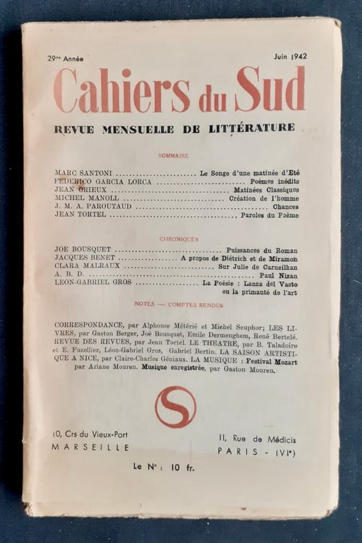 Marseille, directeur: Jean Ballard. Un volume, 87 pages. Bon état.