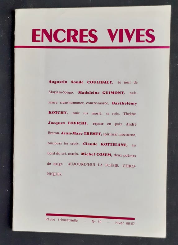 Fondée par Michel Cosem en 1960, Encres vives est aujourd'hui encore une revue mensuelle et une maison d'édition de poésie. Tous nos livres sont visibles sur notre site : https://www.livrepoesie.com/