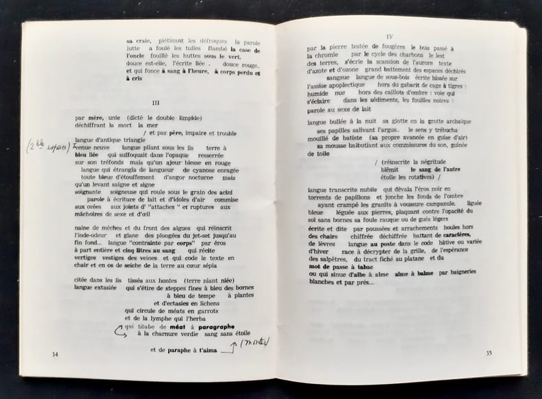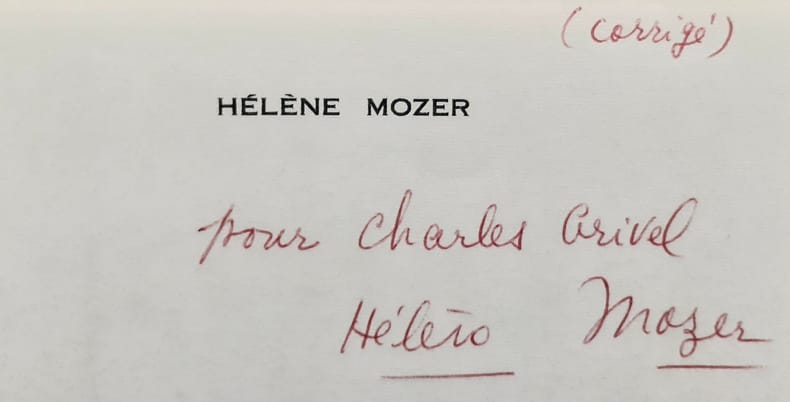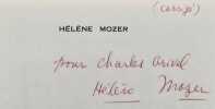 Toulouse : Editions Encres vive, directeur : Michel Cosem. Plaquette agrafée (22,5x15,8 cm), 40 pages. Exemplaire enrichi d'un envoi autographe signé d'Hélène Mozer et corrigé par la poète.