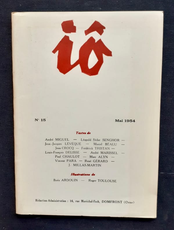 Bonne revue de poésie animée par André Marissel et André Miguel, Io comptera 21 numéros en 18 livraisons parues entre 1951 et 1957. Tous nos livres sont visibles sur notre site : https://www.livrepoesie.com/