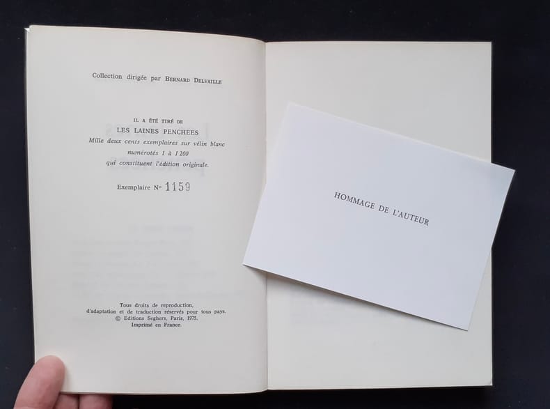 Paris : Seghers (Collection "Poésie 75", dirigée par Bernard Delvaille), 1975. Un volume 20,6x13,5cm broché de 128 pages. Bon état. Edition originale tirée à 1200 exemplaires sur vélin blanc.