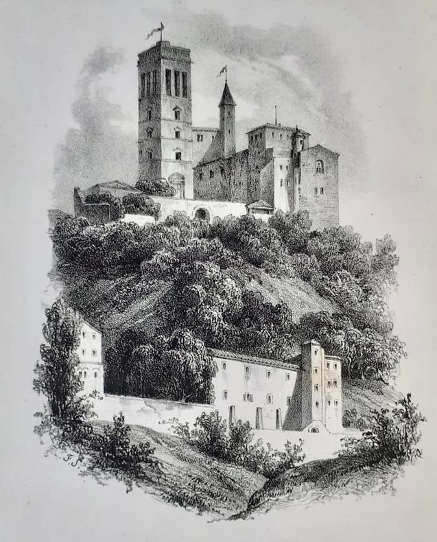Paris : Dentu, Lyon : Chambet, 1834. In-8 demi veau glacé fauve, dos à nerfs soulignés de filets dorés, titre et date en pied, dorés, tête dorée, non rogné (reliure de l'époque). (4), II, 280 pages avec deux planches hors texte, montées sur papier de Chine : Notre-Dame de Fourvière et Saint-Bonaventure, par Frédéric Sorrieu. Dos légèrement passé, mors légèrement fendus, ensemble cependant en bon état et intérieur très frais. Edition originale. Reliure signée de Bruyère. Ex-libris.