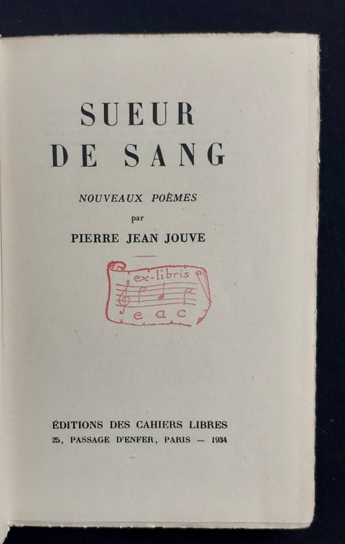 Paris : Editions des Cahiers libres, 1934. Un volume broché (19x12,3 cm) sous couverture rempliée, 150 pages. Edition originale sur papier courant après 70 exemplaires numérotés. Ex-libris au timbre humide sur la page de titre et de faux titre. Légères pliures au dos sinon bon état.