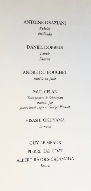 Paris : Editions Clivages, 1990. Directeur de publication : Jean-Pascal Léger. Un volume broché (18x21 cm), (140) pages. Tirage à 1250 exemplaires. Reproductions de dessins de Pierre Tal-Coat, Guy Le Meaux et Albert Rafols-Casamada. Bon état.