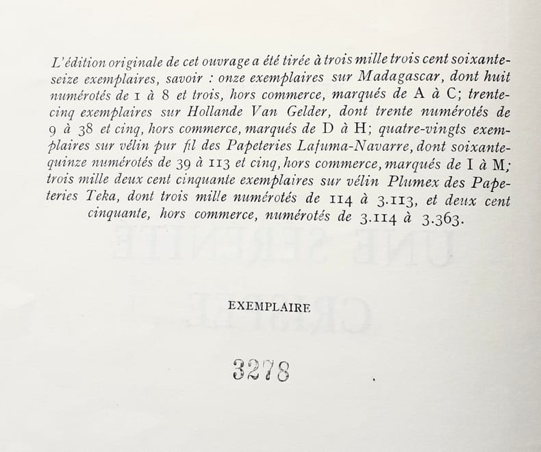 Édition originale. Un des 3250 exemplaires numérotés sur vélin Plumex. N° 453. Bel exemplaire. Photos sur demande.