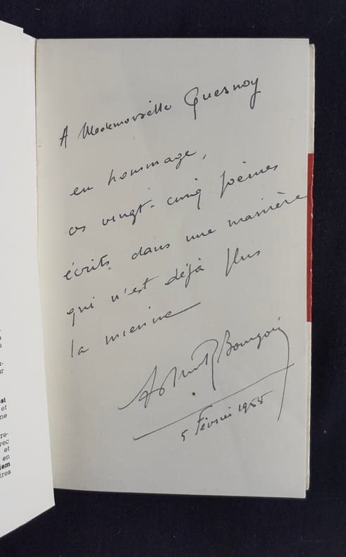 Paris : Pierre Seghers (Collection "P.S."), 1954 - un volume in-12 (11x18 cm) broché sous couverture imprimée en couleurs et rempliée, 39 pages. Avec un envoi autographe signé de Daniel Bourgoin. Bon état.