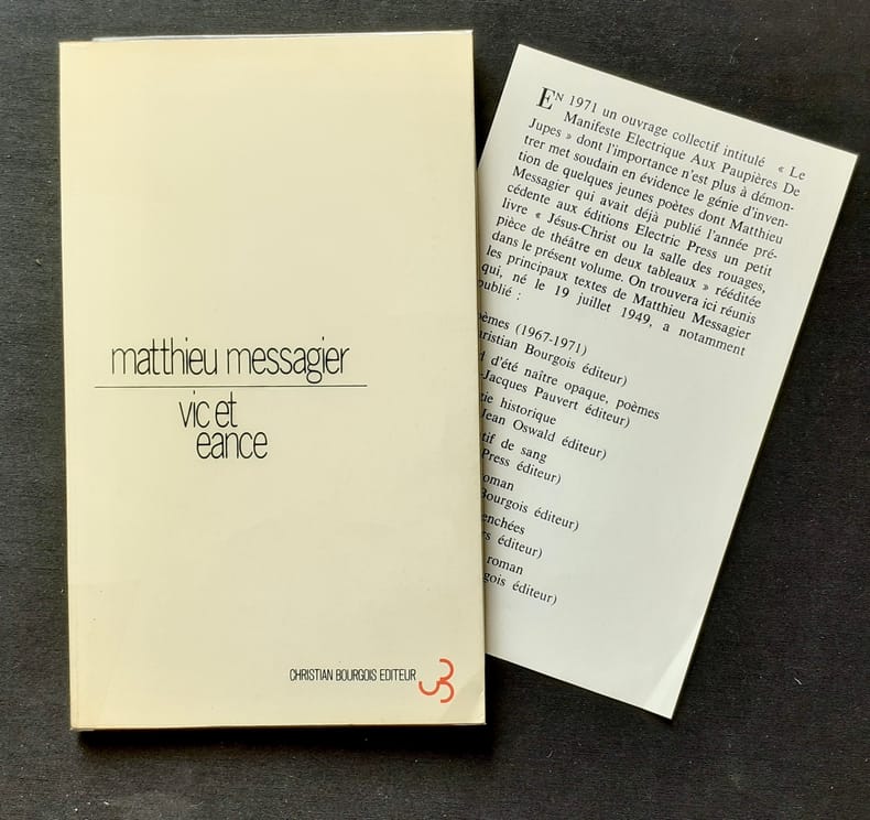 Paris : Editions Christian Bourgois, 1978. Un volume broché (20x12 cm), 59 pages. Edition originale. Bon état.