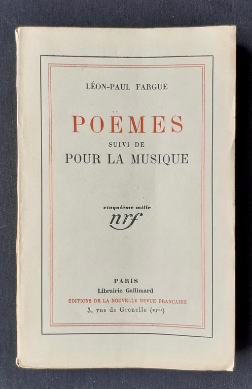 In 12 cartonné;faux-titre,titre,140 pages,Gallimard 1944. relié d’après la maquette de Mario Prassinos Edition originale numérotée N°94/550 très bon état