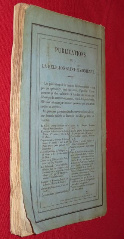 Le Globe, sous-titré journal littéraire, puis philosophique et littéraire est un journal paru à Paris le 15 septembre 1824. En 1828, il devient aussi politique. Il fut fondé et dirigé par Pierre Leroux et Paul-François Dubois, ce dernier assumant le rôle de rédacteur en chef jusqu'en 1830. En janvier 1831, Le Globe devient le journal de la doctrine de Saint-Simon, puis en août de la même année le journal de la religion saint-simonienne. Il cesse de paraître le 20 avril 1832. Merci de nous contacter à l'avance si vous souhaitez consulter une référence au sein de notre librairie.