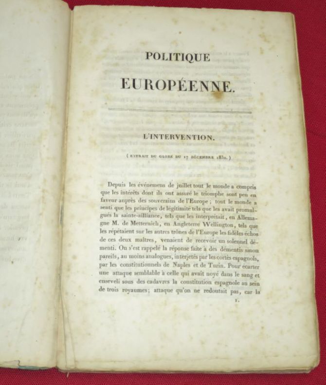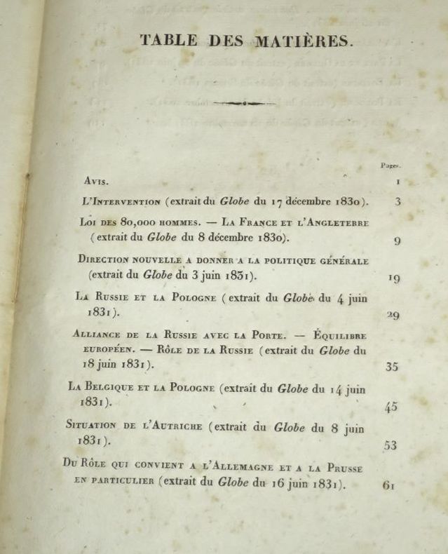 Paris, Au Bureau du Globe, rue Monsigny, N° 6, 1832, 1 volume in-8 de 215x135 mm environ, 127 pages, broché. Dos insolé en partie fendu, des rousseurs fortes par endroits (marge interne).