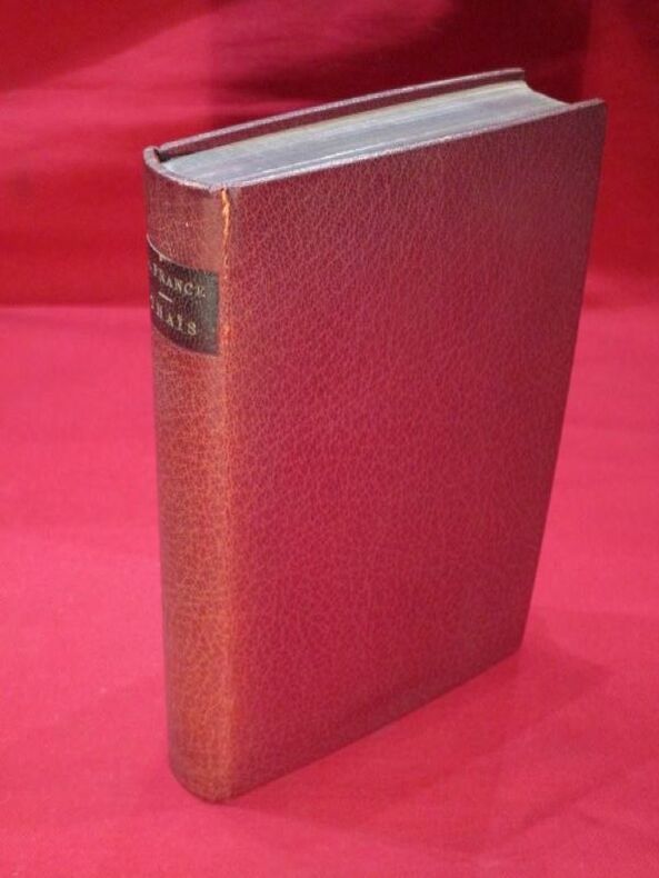 « Que le conte et la nouvelle est de meilleur goût [que le roman] ! Que c'est un moyen délicat de plaire aux gens d'esprit ! [...] La première politesse de l'écrivain, n'est-ce point d'être bref ? La nouvelle suffit à tout. » (Anatole France, La Vie littéraire, t. IV). France ne se défit jamais de ce goût pour les récits courts et commença ainsi sa carrière après quelques recueil de poèmes. Il y voyait là un moyen efficace de transmettre ses idées et sa philosophie des choses Le manuscrit d’un des titres les plus célèbres de France, Thaïs, fut rédigé sur le papier à en tête du Sénat où Anatole France est en poste. La publication en feuilletons dans la Revue des Deux mondes est gérée par Leontine de Caillavet (1er et 15, 1er août 1889) sous le titre définitif de Thaïs. «Le succès fut retentissant et il redoubla d’ampleur, lors de la publication en volume, au mois d’octobre 1890. Brusquement le nom d’Anatole France se répandit dans le grand public : il devint un auteur célèbre et se vit placé sur le même pied que les principaux chefs de file, les Zola, les Maupassant, les Daudet, les Loti, les Bourget qui l’avaient précédé sur la route de la gloire […]». Thaïs connaîtra deux éditions illustrées, l'une par P.-Albert Laurens en 1900 aux éditions Romagnol, l'autre par Rochegrosse en 1909 chez Ferroud. Charmantes reliures uniformes de Visinand pour les deux premiers recueils de nouvelles d'Anatole France et son célèbre Thaïs.