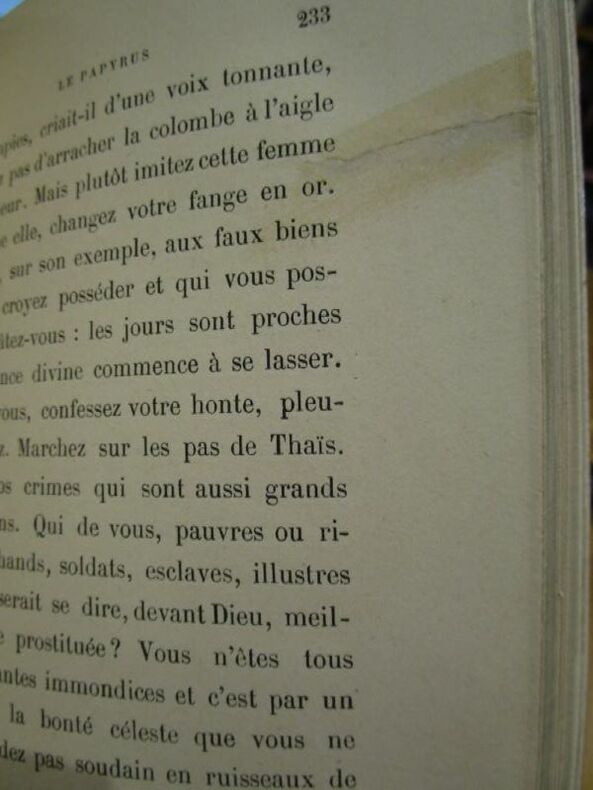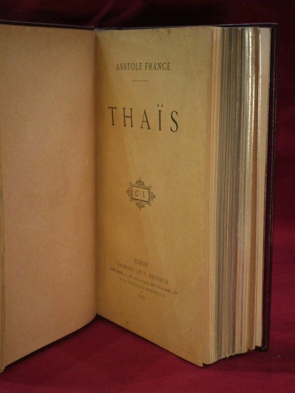 Paphnuce est un abbé d'un groupe de moines cénobites égyptiens fondamentalistes (IVe siècle après J-C). Il s'est retiré dans le désert pour se repentir de sa jeunesse frivole. Après des années de vie monacale, une vision le pousse à revenir sur les lieux de son adolescence. Illuminé, il se donne pour mission de "sauver l'âme" de Thaïs, courtisane de la ville d'Alexandrie, célèbre pour les qualités de son esprit autant que pour sa beauté éblouissante. Paphnuce va parvenir à convaincre la belle Thaïs de rejoindre la vie religieuse afin de trouver le chemin du Ciel et la vie éternelle. Cependant, Paphnuce tombe éperdument amoureux et dès lors, il est dévoré par la jalousie sexuelle en imaginant tous les hommes que Thaïs a accueillis dans son lit. Toute une vie de prières et d'ascétisme, ne réussira pas à éteindre le feu que la seule vue de Thaïs a engendré dans son coeur. Il finira par renier Dieu en recueillant le dernier souffle de Thaïs. volume in-8 180x120, joliment relié, en excellent état, Paris Calman Levy 1928/1930 ref/263