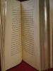 Paris, Les Cent Bibliophiles, 1924 ; in-4 ; plein maroquin aubergine, dos à cinq nerfs, plats décorés et mosaïqués de trois larges compositions horizontales de fleurs stylisées "à l'égyptienne" : celle du haut, sur fond de maroquin mastic, succession de petites et grandes fleurs de maroquin mandarine, bleu-nuit et vert-sapin encadrée d'un listel vert foncé et d'un filet doré ; celle du milieu, alternance de fleurs et feuilles de couleurs violet, parme et vert-sapin, interrompue en son centre par un grand cercle de maroquin mastic dans lequel sont mosaïquées les lettres du titre en vert foncé, qui se chevauchent, le tout entouré d'un listel vert foncé et filet doré ; enfin, celle du bas présente une série de fleurs et feuilles à plat, soulignée d'une double rangée de points mandarine, toujours sur le même fond mastic et encadrée du même listel vert foncé et filet doré.Le décor du second plat, à l'identique mais sans le cercle-titre ; double filet doré sur les coupes, tranches ébarbées et dorées ; contreplats doublés de maroquin havane orné, en encadrement, d'un listel de maroquin aubergine entrecoupé de carrés dorés, triple filet doré, gardes de brocard de soie pourpre, couverture et dos conservés, étui bordé (reliure de Noulhac d'après une maquette de Madeleine Noulhac) ; (8) ff. (3 blancs, justification du tirage, faux-titre au verso frontispice, titre, faux-titre au verso, gravure hors-texte, gravure hors-texte), 215 pp., (8) ff. (table, achevé d'imprimer, Les Cent Bibliophiles, 2 bl.). ; 147 bois dessinés et gravés en couleurs de Louis Jou dont 9 hors-texte et 3 lettrines.