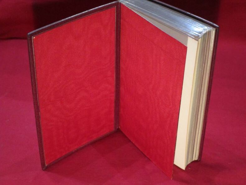 Calmann Lévy, Editeur, Paris, 1891, 1 volume in-12 de 195x125 mm environ, 1 faux-titre, page de titre, 350 pages, plein maroquin bordeaux, dos lisse portant titre argenté sur pièce de titre en maroquin noir, contreplats encadrés d'un filet argenté, gardes de soie rouge moirée, doubles gardes de papier marbré, filet argenté sur les coupes, tranches argentées, couvertures et dos conservés. Première édition, sur papier ordinaire. Lettrage argenté du titre légèrement effacé, cuir craquelé sur 2cm au niveau de la coiffe supérieure, déchirures sans manques restaurées pages 233 à 236, erreurs de pagination sans manque, sinon bon état.