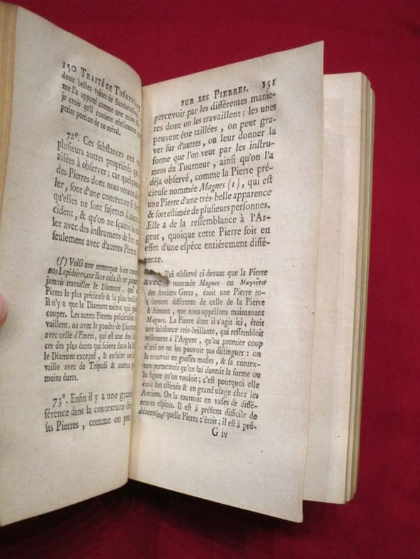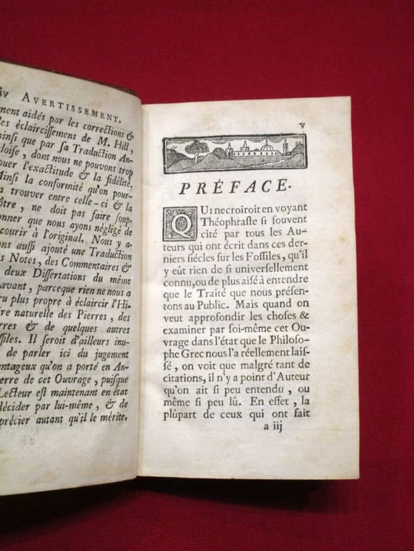 Paris herissant 1754 A Paris, Chez Jean-Thomas Herissant, 1754, 1 volume in-12 de 90x150 mm environ, XXIV, 287 pages. Pleine reliure racinée, dos long portant titres et fers dorés, roulette dorée sur les coupes, gardes blanches. Coiffe de tête accidentée, coiffe de queue absente, des frottements sur les coins et les mors, rares rousseurs sinon intérieur frais, bon état général.