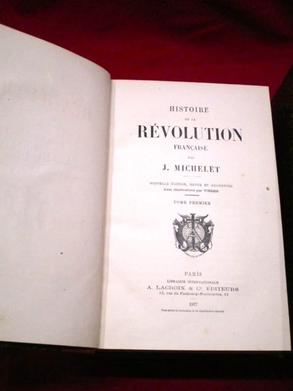 Paris, Jean de Bonnot, impr. Presses d’Aubin-Dumas 1974 7 volumes. In-8 21 x 14 cm. Reliures éditeur pleine peau verte, dos lisses et plats ornés des emblèmes révolutionnaires, têtes dorées, environ 380 pp. par volume, nombreuses gravures et documents d’époque, tables des matières. Ensemble en très bon état.