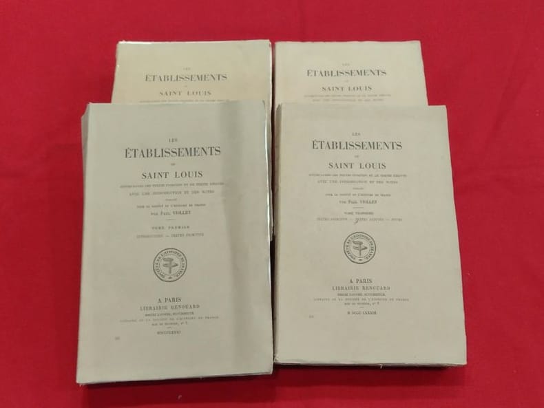 Tome premier: introduction - textes primitifsTome deuxième: texte des établissementsTome troisième: textes primitifs - textes dérivés - notesTome quatrième: notes - table - glossaire Merci de nous contacter à l'avance si vous souhaitez consulter une référence au sein de notre librairie.