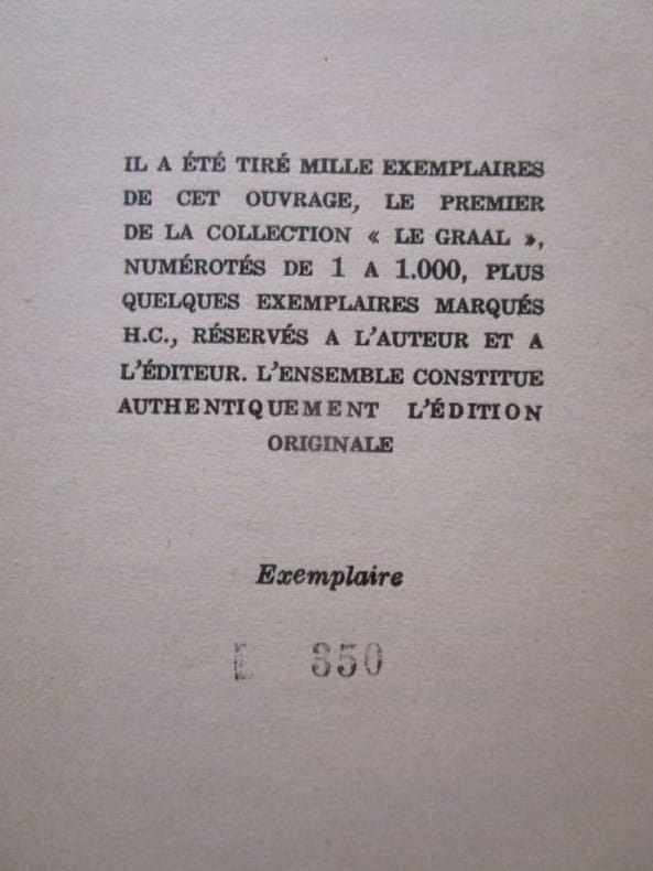 Le Cercle du Livre coll. Le Graal 1953 Le Cercle du Livre coll. Le Graal, 110p + i planche en fin de volume, 1953, in-8 broché. Edition originale tirée à 1000 exemplaires (N° 350). Une accolade au stylo sur une page (14) sinon bon état général.