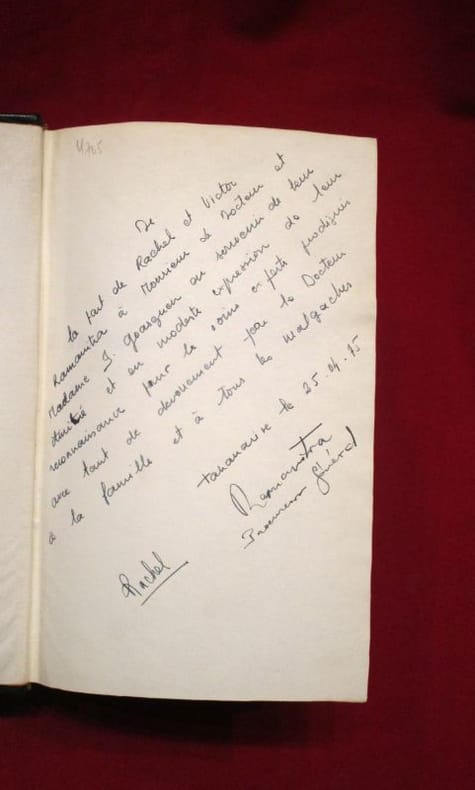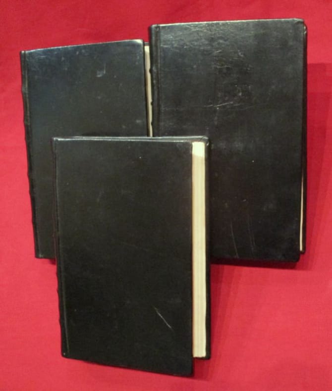 Librairie de Madagascar 1974 Librairie de Madagascar, 688p+484p+583p, 1974, tome 1 à 3 seuls sur 5, volumes in-8 reliures amateur en cuir noir. Reliures modestes avec quelques défauts, des griffures sur les plats, intérieur propre. Dédicacé par Rachel et Victor Ramanitra (procureur général). Bon état général, rare ensemble.