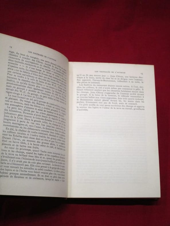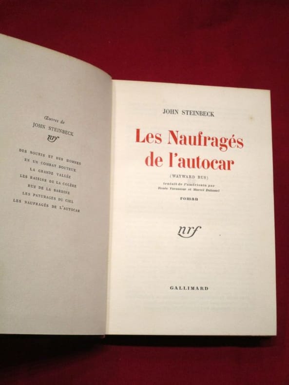 Gallimard, 1949, in-8 br., 252 p., traduction française de 1949 (mention de 23e édition), traduit de l'américain par Renée Vavasseur et Marcel Duhamel, l'ancien propriétaire de ce livre l'a truffé de 16 photos (collées) tirées du film du réalisateur américain Victor Vicas "Les Naufragés de l'autocar" (1957), avec comme interprètes principaux Jayne Mansfield, Joan Collins, Dan Dailey, papier uniformément jauni, sous papier cristal, bon état.