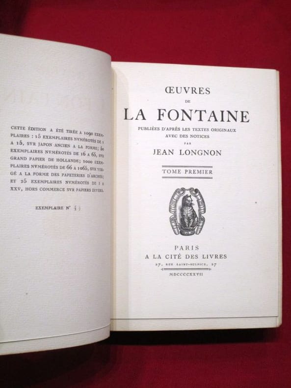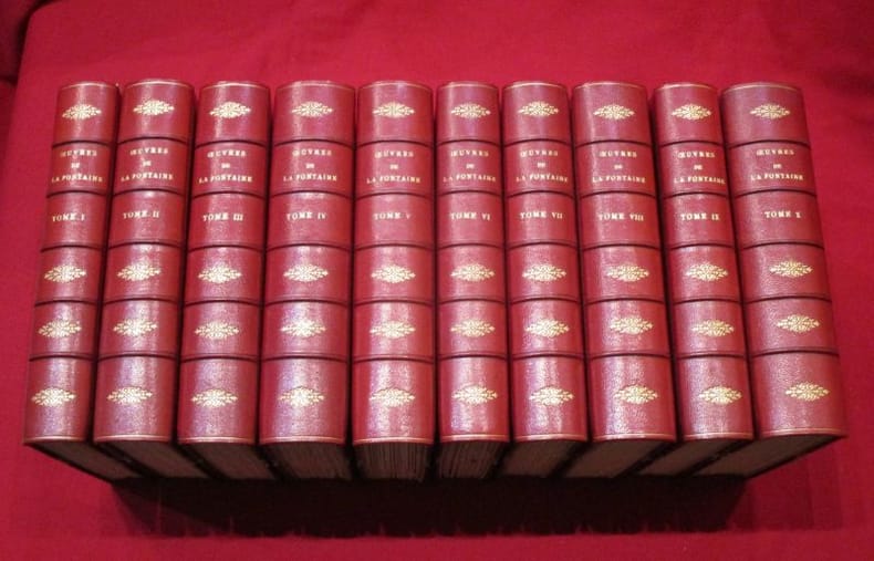 Sont contenus dans ces dix volumes : Contes et Nouvelles (2 volumes), Fables (2 volumes), Les Amours de Psyché et de Cupidon/Fragments du songe de Vaux, Poèmes et poésies diverses (Adonis et les poèmes héroïques, poésies amoureuses et satiriques, Le Quinquina, La captivité de Saint- Marc et les poésies religieuses), Pièces de circonstance, Lettres et opuscules (Relation d'un voyage de Paris en Limousin, Lettres en prose et en vers, Lettres diverses, Epîtres dédicatoires et opuscules en prose), Théâtre (2 volumes : tragédies, comédies). Merci de nous contacter à l'avance si vous souhaitez consulter une référence au sein de notre librairie.