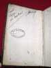 1769. 1769 1 vol petit in-4 manuscrit (145 x 213 mm) de : [1] f. (frontispice au lavis d'encre noire) ; 479 pp (dont table et errata) ; 15 planches manuscrites repliées. Ex-libris aux armes du baron de Charansonnex (Mr de Massingy) : « virtus sepulta resurget ». Dédicace faite par l'auteur à Mr de Massingy sur le frontispice dessiné. (Tache dencre en marge supérieure, quelques planches découpées sur lencadrement) Plein veau marbré d'époque, dos nerfs orné, titre de maroquin havane, roulette sur les coupes, tranches rouges. (Petit manque à la coiffe inférieure, petite fente de 5 mm sur le haut du mors supérieur)