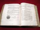 République, Rondonneau 1804 1 A Paris, De l'Imprimerie de la République, An XII, 1804, 1 volume in-4 de 195x255 mm environ, (2) ff. (faux-titre, page de titre à la vignette du Grand Juge et Ministre de la Justice), 579 pages, [suivi de la] Table alphabétique, A Paris, chez Rondonneau, an XII, 1804, 111 pages. Plein veau moucheté, dos à cinq nerfs portant titre doré sur pièce de cuir rouge, caissons ornés, double filet doré sur les coupes, tranches mouchetées, gardes blanches. Exemplaire solide mais reliure comportant des défauts (coiffe supérieure absente, fendillements sur le mors supérieur, première garde volante absente, quelques taches sur le cuir, coins frottés), des taches d'encre sur les pages 485, 486, 487, sinon bon état général, bel exemplaire de cette édition originale.