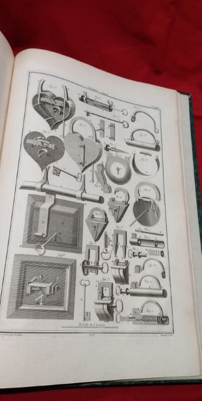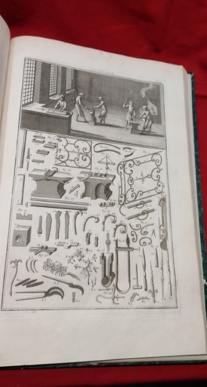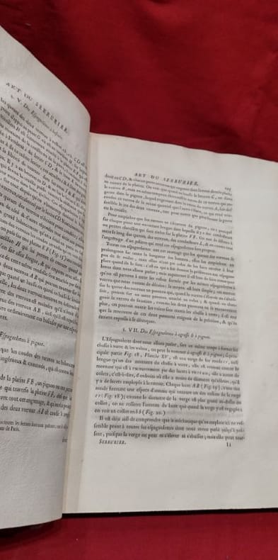 1767 in-folio [A Paris, chez SAILLANT & NYON, DESAINT,] imprimerie L. F. DELATOUR, 1767, 1 volume in-folio de 285x430 mm environ, (1) f., page de titre, IIJ, 302 pages, complet des 43 planches in-fine (dont une bis). Demi-basane havane postérieure, dos long portant titres et ex libris dorés, tranches mouchetées, gardes blanches. Reliure usée (coiffe de queue manquante, cuir épidermé par endroits, étiquette papier sur le dos, manque de papier sur le plat inférieur) mais exemplaire solide, rares traces de manipulation en marge de certains feuillets, bon état général.