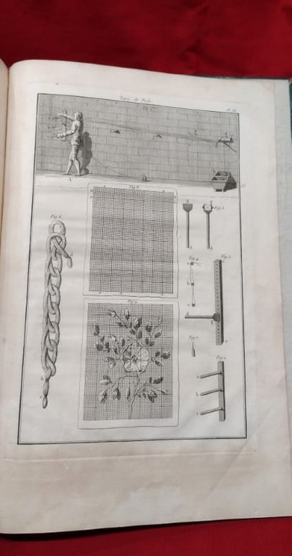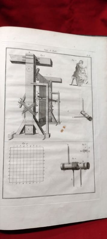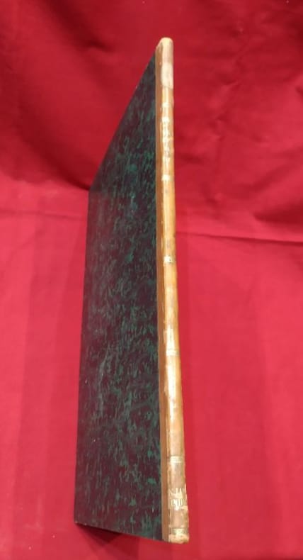 1766 in-folio [A Paris, chez SAILLANT & NYON, DESAINT,] imprimerie L. F. DELATOUR, 1766, 1 volume in-folio de 285x430 mm environ, (1) f., page de titre, 25 pages, complet des 4 planches in-fine. Demi-basane havane postérieure, dos long portant titres et ex libris dorés, tranches mouchetées, gardes blanches. Reliure usée (cuir épidermé par endroits, étiquette papier sur le dos, menus frottements sur les plats) mais exemplaire solide, des traces de mouillures sur les marges inférieures, sinon bon état général.