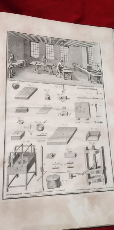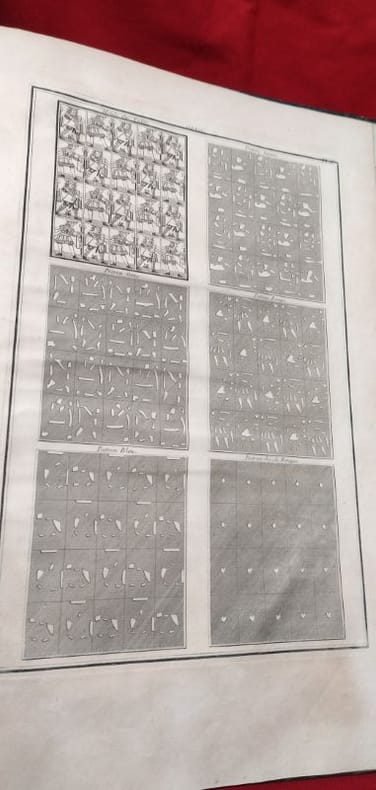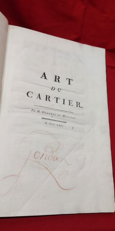 1762 in-folio [A Paris, chez SAILLANT & NYON, DESAINT,] imprimerie L. F. DELATOUR, 1762, 1 volume in-folio de 285x430 mm environ, (1) f., page de titre, 38 pages, complet des 5 planches in-fine. Demi-basane havane postérieure, dos long portant titres et ex libris dorés, tranches mouchetées, gardes blanches. Cuir épidermé par endroits, étiquette papier sur le dos, ex libris au crayon sur la page de titre, quelques rousseurs et brunissures marginales, sinon bon état général.
