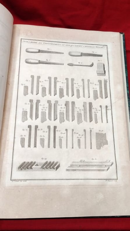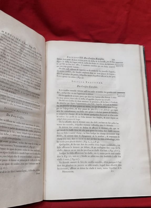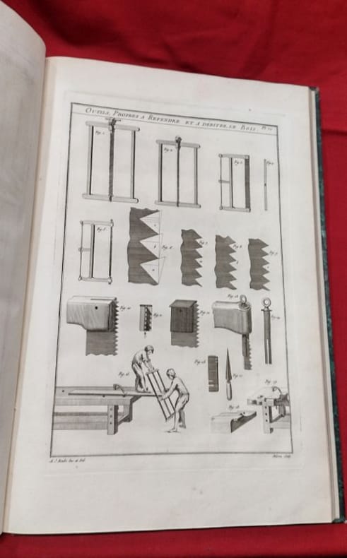 1769 in-folio [A Paris, chez SAILLANT & NYON, DESAINT,] imprimerie L. F. DELATOUR, 1769, 1 volume in-folio de 285x430 mm environ, (1) f., page de titre, (1) f. (Extrait des registres de l'Académie des Sciences), 151 pages (erreur de pagination mais texte complet), complet des 50 planches in-fine. Demi-basane havane postérieure, dos long portant titres et ex libris dorés, tranches mouchetées, gardes blanches. Cuir épidermé par endroits, coiffe inférieure manquante, étiquette papier sur le dos, garde volante déchirée, rousseurs éparses, rares pages brunies, une déchirure restaurée à la planche 19 sinon bon état général.