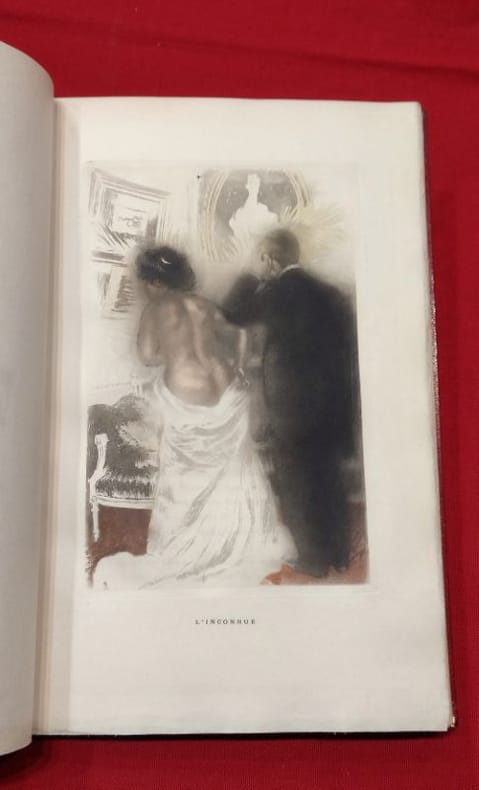 Ouvrage iillustré de 82 eaux-fortes originales de Louis LEGRAND, dont 6 en couleurs à pleine page et 76 en bistre dans le texte.1 des 130 exemplaires numérotés sur japon, celui-ci spécialement imprimé pour Mr Ernest Droin. « Beau livre, très recherché à juste titre » (Carteret), Il a été très bien relié en reliure souple par Noulhac et enrichi de la couverture illustrée du menu de repas donné à l’issue de l’assemblée générale annuelle de la Société des Cent bibliophiles le 13 décembre 1904, et d’une très belle eau-forte originale d’Edgar Chahine, signée et datée 1903.Ex-libris Ernest Droin et Jacques Crépineau.