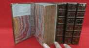 gisset, bordelet, ganeau 1750 4 in-12 A Paris, chez Gissey, Bordelet, Ganeau, 1752, 4 volumes in-12, (2) ff., LX, 58, 498 pages, (3) ff.-(2) ff., 519 pages - (3) ff., XIV, 540 pages - (2) ff., 525 pages. Plein veau marbré, dos à cinq nerfs portant titres et tomaisons dorés sur pièces de cuir, caissons ornés, filets d'encadrements des plats à froid, filet doré sur les coupes, roulette dorée sur les chasses, tranches mouchetées de rouges, gardes de papier marbré peigné. Cinq coiffes manquantes ou endommagées, coins frottés, rares rousseurs, sinon bon état général.