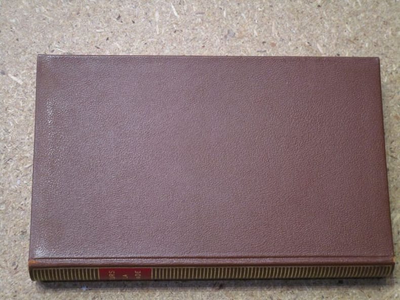 Gallimard NRF Album Bibliothèque de la Pléiade 1960 NRF, Gallimard, Bibliothèque de la Pléiade, 1963, [6] p. (faux-titre, achevé d'imprimé, titre, avertissement), 350 p., [10] p. (index, table), plein cuir brun éditeur, environ 175x115 mm, titre doré sur fond rouge, dos lisse orné de filets horizontaux, sous jaquette illustrée en 2 parties laissant le dos nu, rhodoïd, protégé par son étui en carton muet, gardes et tranche supérieure saumon. Etui cartonné restauré par des bandes adhésives avec frottements et mouillures, rhodoïd jauni, bon état pour le reste et intérieur très propre.