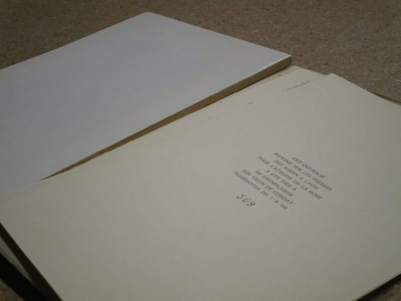 Audin Atelier de la Rose 1954 Audin, Atelier de la Rose, 1954 (Copyright), 133 p. et 8 hors-texte in fine, broché, environ 255x165mm, exemplaire numéroté 369/500 sur Velin de Condat. Couverture salie avec des déchirures en bordure, dos en partie décollé (page d'achevé d'imprimé détachée), une déchirure sans manque sur le haut du dos, sinon intérieur bien propre, pages non coupées (jamais lu).